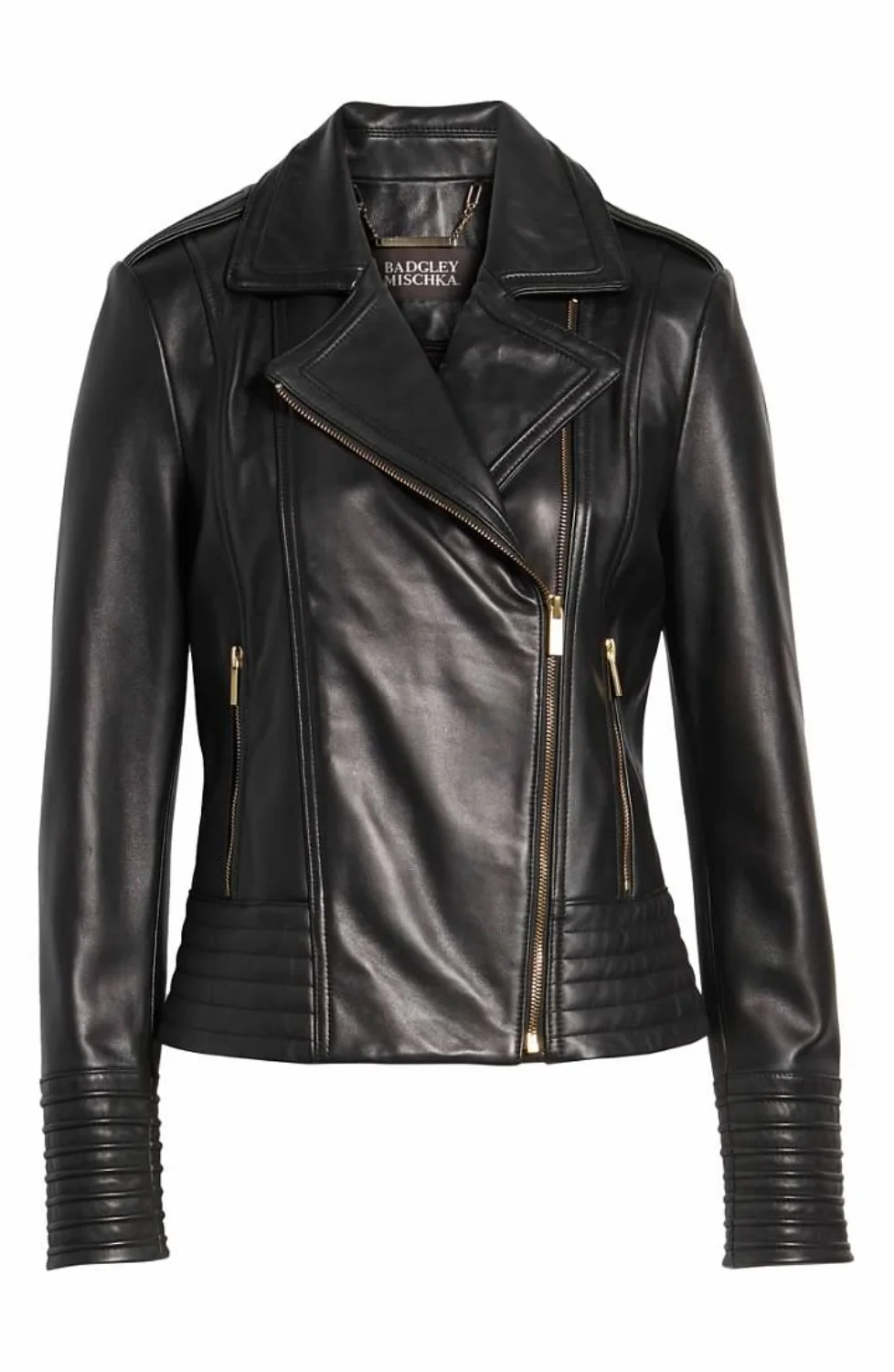 NWT Badgley Mischka Gia Quilted Leather Biker Jacket in Black Size Small